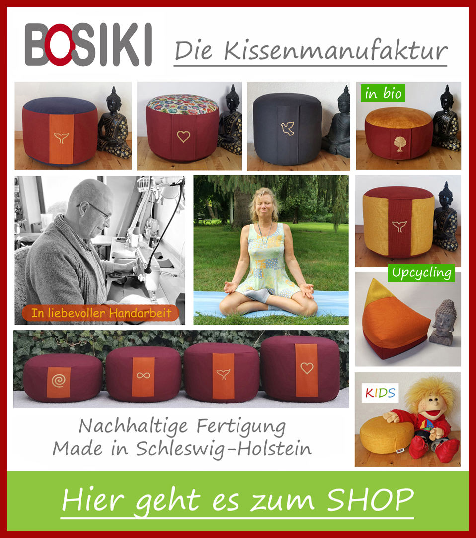 Jedes BOSIKI Meditationskissen & Yogakissen ist eine Einzelanfertigung und keine Massenware. Sie sind nicht einmal um die Welt gereist und durch viele Hände gegangen. Sondern werden direkt aus meiner Manufaktur an Sie verschickt. |